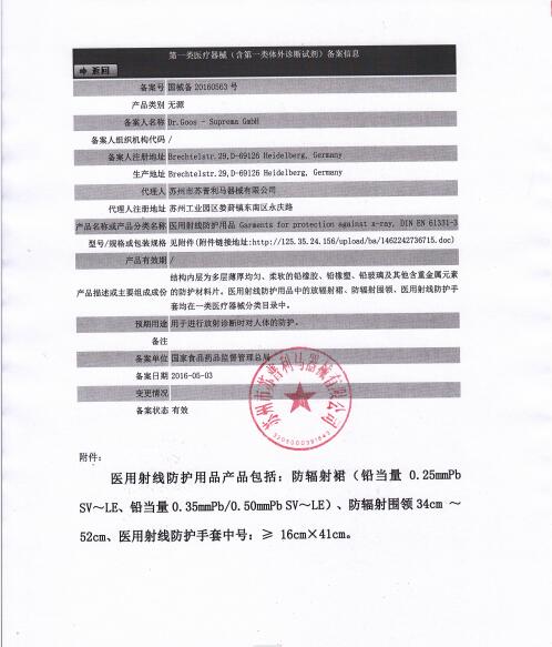 蘇州市蘇普利馬器械有限公司是專業(yè)從事醫(yī)用X射線防護系列用品、裝置、代理德國Dr.Goos-Suprema Gmbh.顧斯博士-蘇普利馬有限公司生產(chǎn)的原裝進口鉛衣及醫(yī)用觀片燈的生產(chǎn)銷售企業(yè).生產(chǎn)的X射線防護圍裙均來自美國SHIELDING公司的最新型超薄型防護材料,,具有防護性能可靠、穿戴舒適、輕便柔軟、操作自如等諸多優(yōu)點.產(chǎn)品均通過相關X射線檢測機構(gòu)的檢測,達到產(chǎn)品標準的要求.X射線醫(yī)用膠片觀察燈。是采用全LFD燈光技術。具有重量輕,光源均勻,亮度高,無頻閃,不變型,使用壽命長等特點。均取得了生產(chǎn)許可及醫(yī)查看更多>>